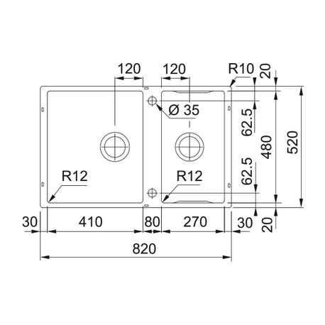 Franke > Drezy > Zlewozmywaki kuchenne > Zlewozmywaki podblatowe > Drez Franke Box Center BWX 120-41-27, brúsená oceľ