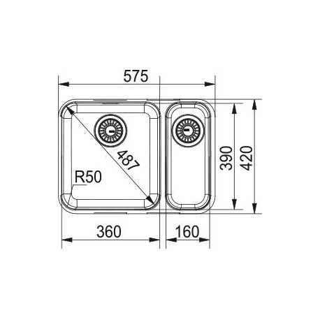 Franke > Drezy > Zlewozmywaki kuchenne > Zlewozmywaki podblatowe > Drez Largo LAX 160-36-16, podblatowy, półtorakomorowy (malá komora s pravé stronie), 58x42 cm - brúsená oceľ